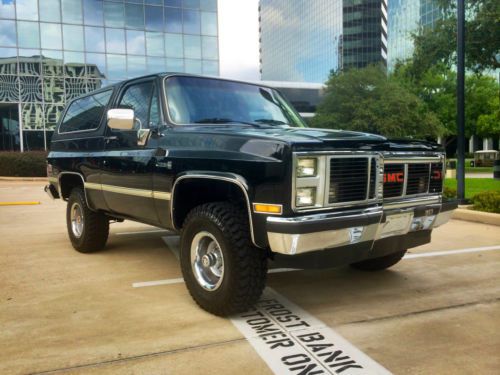1985 GMC K1500 Jimmy Sierra Classic 4x4 Sport I sold this vehicle to a very nice gentleman. He is a United States Veteran and I was proud to sell him his dream truck; he said it's what he should have bought back in 1985. But life happens and he wasn't able to put the money together. I understand at some level, but do not want to go through the relist process again, so please do not make an offer if you are not able to perform. One-family owned from new. 104,576 miles. Vehicle is driven so miles will be slightly higher. Well maintained. Runs and drives well. This is the classic K1500 Jimmy / C5 Blazer with the rear removable hardtop. Highly optioned with the Grand Sierra package. Tinted glass. Power rear window. Factory air conditioning. AM/FM/Cassette stereo. Cruise control. Chromed front grille/bumper guard. Heavy-duty receiver trailer hitch. Towing Package. Electric trailer brake controller. RECENT $3500 FULL REPAINT IN ORIGINAL MIDNIGHT BLACK COLOR. Deep shine. Looks great. NEW Firestone Destination M/T off-road tires with less than 300 miles. Excellent original interior. Please see photos. Obviously pampered by the family. New driver's side power window actuator and passenger side window actuator serviced. Air conditioning serviced and charged less than a month ago. Overall excellent condition. All power options, dials, and gauges work; even the clock. Mechanically excellent. Engine runs beautifully. Automatic transmission with overdrive. Shifts well. Power disc/drum brakes. 3.73 rear end. 4x4 with 2-speed transfer case. Always maintained. Receipts, manuals and copy of original dealer invoice included. If you are looking for a nice classic Jimmy for fun on and off-road, here it is. Located in Houston, Texas. Fly-in and drive it home. A realistic reserve has been placed on this rig in keeping with its condition. Please bid accordingly. Thanks for looking and good luck. Charles 713.444.5088 |