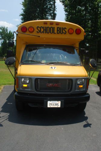 1997 GMC Savana School Bus, turbo diesel 6.5, low miles, runs great, seat belts throughout, back up camera, tinted windows, new stereo with ipod hook-up and rear speakers, rear heat, 6 new tires, all fluids recently changed including axles, transmission and synthetic oil. 2 new batteries. Everything has been gone over by a mechanic. Runs solid. All lights and sign work. Has some rust. Was originally used for a preschool in New York and then we used it for infrequent homeschool events.