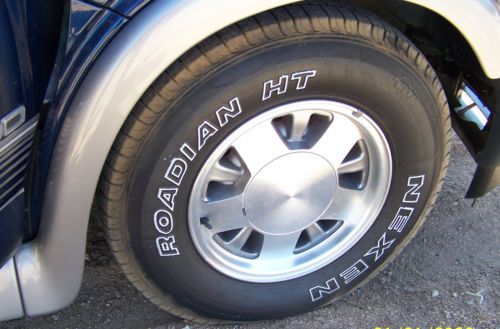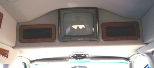 This auction is for a 1999 GMC 1500 Conversion van with a 5.7 liter Vortec V8 engine. It has 4 wheel antilock brakes with wear sensors. It has an independent front suspension with 2 stage multi leaf RR Springs and a Front Stabilizer Bar. It also has front and side window defoggers, an intermittent feature on the wiper system, a 31 gallon fuel tank, swing out double side door, fold away ext electric mirrors, mirrors, dual halogen headlamps, illuminated visor mirrors, power radio antenna, AM/FM Stereo CD/Cassette player with theft lock and auto tone, Deep tinted glass. It also has a 3.73 ratio on the rear axle and the GVW rating is 7100 pounds. The paint is a custom deep blue metallic with custom graphics. The custom conversion package contains a top extension giving more headroom in the van. It also includes a custom audio/visual system. It has tip out side door and rear door windows. The interior is luxuriously appointed with wood grain accents and shades all around (except the front window and front side windows). It seats 6 or 7 adults comfortably on 4 captain's chair seats with armrests and one bench seat in the back. The middle two seats are easily removed and the back couch seat folds easily into a bed. The floor mats are custom molded and the carpet is silvery blue. There are 4 cup holders and knick-knack trays in the back and two generous cupholders in the front. This van runs like a champ and is equipped with a tow hitch and wired for tow lights. |
