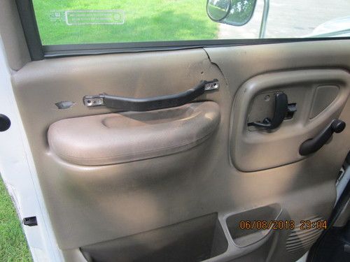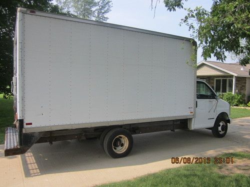 2001 GMC Savana 3500 diesel box truck for sale in as is where is condition. Truck has 233,000 miles. Starts, runs, drives and stops good. Box is good and tight...no leaks. Door rolls up and down easy. Floor is good. Roll up walk plank is missing. Tires are in decent shape. Brakes are good. Air conditioning does NOT work. Drivers side door panel has a crack in it...doesnt hurt how it works. No check engine lights. Crack in the windshield. Small spots of rust on the rockers and cab corners as seen in the pics. Tear in drivers seat. I try to describe the truck as best as possible. Please ask questions before bidding. Pre-viewing of truck is encouraged. Selling to U S only. Will not ship, for local pick-up only. CASH only upon pickup. Must be paid for and picked up within 10 days of auction end. Winning bidder must contact me within 24 hours of auction end to make pickup arrangements. I reserve the right to end auction early due to local sale. Metal in back of truck does not go with the truck. It will be removed before auction end.