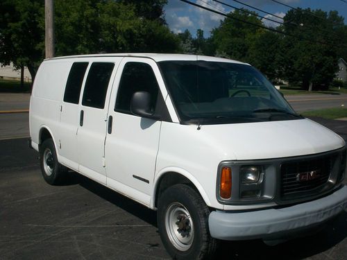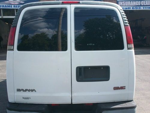 I AM SELLING A 2002 GMC 3500 6.5 DIESEL SAVANA VAN 1 TON. THE VAN WAS IN A FLOOD. IT DOES NOT START AND THE MILEAGE IS UNKNOWN. THERE ARE SOME DENTS AND SCRATCHES. THERE ARE RIPS IN THE SEATS. IT WOULD MAKE A GREAT WORK VEHICLE, HEAVY DUTY. IT HAS GOOD TIRES ON IT.