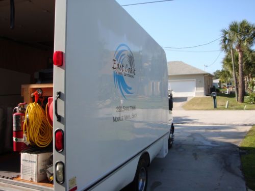 The logos and lettering on the vehicle are all made out of vinyl and can easily be peeled off. This Vehicle has a 14ft Unicell Fiberglass box on the back with a built in Coleman 35,000 BTU Air Condition Roof Unit. This unit runs off of the built in electrical system. The vehicle has a full electrical panel / system built in. The vehicle is setup to run off of shore power (Plug into any properly rated outlet) or off of a built in generator. The electrical system includes an electrical panel, 8 outlets, 2 Florescent lights, and room for expansion. The built in generator is a KYFA/6747 Cummins Onan. The generator produces 4,000 watts and has a separate fuel tank with battery operated start. The vehicle also has a full strobe system installed. The panel is installed in the cabin and there are two strobes in the front indicator light housings and two strobe in red housings on the back of the box. The vehicle does not come with anything that may be shown in the Box or Cabin in the pictures. This vehicle still stores sign products and is a working sign shop until it is sold. Seller is willing to sell as a sign business if buyer is interested. If so please contact the Seller. The vehicle is also listed locally and the Seller reserves the right to end the auction at anytime if the vehicle has been purchased locally. If the buyer would like to inspect the vehicle in person, or have someone come and inspect the vehicle it must be done prior to the auction ending. Please contact the seller to make the arrangements. The buyer is responsible for all shipping arrangements. The seller does not express any written or implied warranty(ies). |