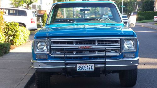 For Sale Worldwide OVER 50 FULL SIZE PICTURES TO VIEW CLICK THIS LINK BELOW http://s118.photobucket.com/user/troyspupies/slideshow/1977%20GMC%20Sierra%204x4%2073k%20Miles THIS IS A NO RESERVE AUCTION !!! HIGHEST BIDDER WILL WIN THIS BEAUTIFUL CLASSIC 4X4 TRUCK ! HERE IS YOUR CHANCE TO OWN ONE OF THE BEST AMERICAN CLASSIC 4'WHEEL DRIVES EVER BUILT. ..EXTREMELY RARE AND HARD TO FIND ONE IN THIS CONDITION A REAL SURVIVOR.. 1975 GMC PICKUP SIERRA K/1500 REGULAR-CAB 4 WHEEL DRIVE ORIGINAL 5'7LITER 350 8'CYLINDER ENGINE FACTORY 4'SPEED MANUAL TRANSMISSION !! WOW !! (ONLY 73,044 MILES) THIS AS BEEN A OLDER ADULT OWNED TRUCK FOR MANY YAERS GARAGE KEPT WELL CARED FOR AND ALWAYS SERVICE SINCE 1977 CLEAN HISTORY REPORTS NO DINGS DENTS OR SCRATCHES NON SMOKER ALL STOCK - MOSTLEY ALL ORIGINAL HAS ALL FACTORY OPTIONS BUCKET SEATS CENTER CONSOLE MANUAL WINDOWS MANUAL DOOR LOCKS MANUAL MIRRORS SLIDING REAR WINDOW AFTERMARKET CD PLAYER FACTORY 4X4 REALLY WHEELS WITH MANUAL 4-WD LOCKING HUB'S THIS TRUCK STARTS, RUNS, DRIVES, STOPS, TURNS AND LOOKS GREAT! CHROME MOLDINGS ARE IN GOOD SHAPE 4X4 WORKS GREAT ENGINE IS STRONG AND HEALTHY TRANSMISSION SHIFTS NICE AND SMOOTH IT IS IN EXCELLENT CONDITION!!! FOR BEING OVER 35 YAERS OLD YOU WONT BE DISAPPOINTED WHEN YOU SEE IT FOR YOUR SELF YOU WILL NOT FIND A NICER ONE FOR IT'S AGE!!! DON'T SNOOZE AND LOSE WILL NOT LAST LONG