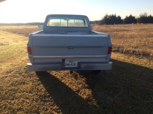 Truck is in great shape for an 1983. New 350 engine recently installed and has less than 50 miles on it. New brakes and brake rotors. Interior is in good condition. New battery. Truck has no body damage. Very straight. Truck has primer coat of paint. Heavy duty rear bumper has powder coat chrome finish. Mud tires still have a lot of tread left. Only mechanical problem known is after new motor installed the transmission wont shift to over drive.