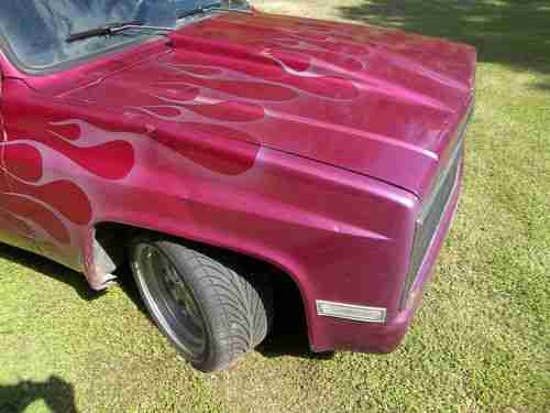 Up for auction is a 1987 SWB Project truck. I bought it to fix up but need to sell now. It has the TBI 350 with 700 R4 Transmission. It runs and drives good. Duel fuel tanks with new pumps. Drivers tank does not work right now I think it has a ground issue. It has all NEW AC compressor dryer and hose, AC blows cold!! It has had a lot of older custom modifications around 2006. Smoothed tail lights, tailgate, and mirrors. Roll pan front and back. It has drop spindles in front, Phantom grill, Eagle 17" wheels with NEW 275-40-17 tire on them. The windows work great with new switches. The power lock needs new switches. The speedometer does not work it has a newer trans with the speed censer instead of cable, But I Have a older 700 R4 with the cable hook up that will go with the sale. Someone also put a 3 speed auto column in the truck. It does have some rust and dents! Look at pics! I do drive this truck to work on occasion "70 mile round trip" always gets me home.