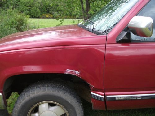 1992 GMC 1/2 TON 4X4 EXTENDED CAB Stepside, Shortbox This is a very hard to find 1992 "GMC" 4x4 1/2 ton Stepside, shortbox extended cab pickup. I've drove this truck since 1993 and have only seen two others. NO RUST- this truck has lived most of its life in Arizona. It has: 5.7 throttle body fuel injection motor; 350 turbo automatic transmission; Auto hubs on the fly 4x4; Factory bucket seats in front, bench seat in rear; All glass good; All power windows and and power locks work; Good brakes; Good tires about 20%; Cd player with AM/FM stero; Air condition (needs recharging) Receiver Hitch with electric brake setup; Excellent commercial sprayed on Bedliner; No rust; Paint clearcoat is starting to peal in places and there is a dent on the front drivers fender (see pics); Drivers armrest needs to be repaired; No headliner; Latch on tailgate is missing trim/handle, but works; Canopy included. 289,000 miles on odom; This has been always been a great truck for us. This vehicle is sold "AS is, Where is" no warranty implied.. Buyer is responsible for all related costs and arrangements for the removal of the vehicle from Seller. Vehicle must be removed within 14 days unless other arrangements are made with Seller prior to bidding. This is a binding agreement if you bid so please ask all questions and check with shipping prior to placing your bid. If you would like to talk by phone please send me your name and number and I will be glad to call you back. A $500 Paypal deposit is due within 24 hours of auction end and the balance of CASH is due within 7 days of auction close. If you need to make other arrangements contact meprior to bidding. Seller will not release vehicle or title until all funds are paid in full and cleared. If you cannot do cash I will consider a wire. Keep the communication open if you have questions. Yes I sell international. If your a scam who is paying more with the cashier check don't bother. I will check to see if your legitimate. Happy Bidding and thanks for looking. |
