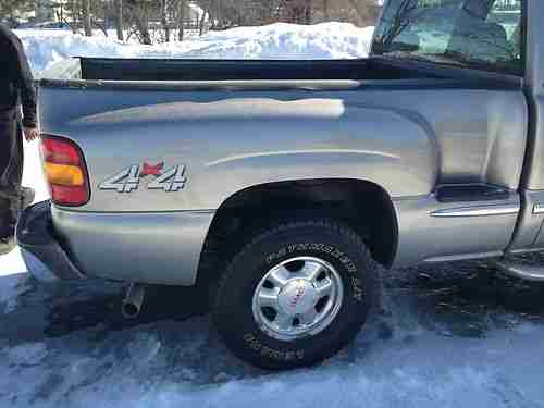 1999 GMC Sierra 4X4 1500 Stepside. Professionally detailed. Very clean inside and out. Seats are like new with no rips or stains. The paint still shines like new. Truck runs and drives great. No service lights on in the dash. Tires are 60%. Has trailering package with heavy duty hitch, I did have a transmission cooler installed for pulling my snowmobiles around. Truck was never used for snowplowing. Very nice truck for the money. Reserve is low. Fell free to stop for a test drive, you will not be dissapointed. One of te cleanest 1999 trucks out there. Cab corners and rocker panels are in excellent shape with NO rust. The only rust on the truck is surface rust on the bottom of the tailgate and one small surface rust spot on the bottom of the 3rd door and a quarter sized rust spot on gas cap cover, all of which I took pictures of. Windshield has crack across the bottom and is not in view while driving. Feel free to call with any questions or to test drive. Tim (715)551-1697 Gas gauge is acting up as it goes down to empty when truck is stopped but goes where it should be when truck is moving. Probably just a ground issue. I am only the second owner and have owned the truck since 22,000 miles and have never had any issues and hate to let it go but I bought a new truck and no longer need this one. Check out history report, It is way above average with no issues ever. No accidents or even a fender bender. Beautiful clean truck and well worth the reserve. Truck is for sale locally and reserve the right to end auction early if truck sells local.