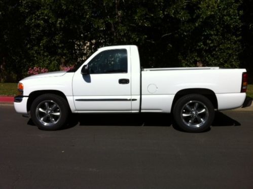 You are looking at a very rare V8 1/2 ton GMC SIERRA 1500 Shortbed with SLE package, Loaded with power options, tow package and custom made 6 spoke Amarican Racing wheels with new tires less than 500 miles on them. Truck is like new, smells new and drives perfect. This truck did sustain some damage in the front previously but was so nice I decided to keep it and repair it with all brand new FACTORY parts! It is currently registered and plated to me I have the title in hand. It does show previous salvage history. The vehicle was repaired at the same facility which repairs very high end cars and the repairs are flawless. The interior has never been smoked in and the bed has never been used for anything. There are no flaws or dings or dents anywhere. It does not even have any rock chips on the front bumper! Both front and rear bumpers as well as the grille are brand new (not rechromed). It Can be seen by appointment in Van Nuys California. Please read all of my detailed feedback you can feel confident my description is very accurate. This is my personal vehicle. Thanks for looking! Please feel free to call me with any questions. 818 486-6300 |