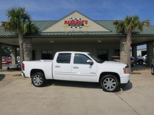 This outstanding example of a 2011 GMC Sierra 1500 Crew Cab Denali is offered by Rabeaux's Auto Sales. Low, low mileage coupled with an exacting maintenance program make this vehicle a rare find. The best part about navigation systems like the one that comes in this car? You don't have to try to fold them up and stuff them back into the glove box. This GMC includes: SEATS, HEATED AND COOLED GVWR, 6800 LBS REARVIEW CAMERA SYSTEM LPO, THEFT-DETERRENT WHEEL, SECURITY SYSTEM AUDIO SYSTEM WITH NAVIGATION AM/FM COCOA/LIGHT CASHMERE, NUANCE LEATHER-APPOINTED SEAT TRIM SUMMIT WHITE LPO, 20 ASSIST STEPS, CHROMED TUBULAR, 6 OVAL SUNROOF, POWER, WITH EXPRESS-OPEN, RETRACTS INTO ROOF SEATS, FRONT BUCKET More information about the 2011 GMC Sierra 1500 Crew Cab: Full-size trucks are used in such a wide range of situations--from construction fleets to long-distance driving--and the broad range of interiors and hauling/towing options offered in the GMC Sierra and help satisfy shoppers better than most other competing models. SLE and SLT models are probably the best fit for buyers who need the sturdy, get-messy capability of a pickup at least some of the time, but the Sierra Denali is the choice for those who need a pickup that doesn't compromise luxury. And for those who need a pickup but want to make a greener choice, with even lower operating costs, the Sierra Hybrid makes up to 25% better fuel economy without sacrificing much towing or hauling ability. Strengths of this model include Top-notch interiors to suit work or luxury use, strong tow ratings, fuel economy, and extensive features and options