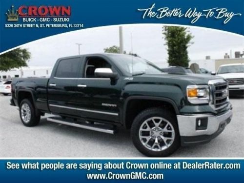 , Before Discount:$51,470.00, Bonus Cash:($1,000.00), Dealer Discount:($3,938.00), Cash Incentive:($750.00), Special Discount:($400.00), Internet Price:$45,382.00, Total Savings:($6,088.00)!4X4, BACK-UP CAMERA, LEATHER, BLUETOOTH, MP3 Player, KEYLESS ENTRY, SAT RADIO, The 2014 GMC Sierra 1500 is all new for 2014. It possesses chiseled features and distinct lines that not only make it look imposing, but increase how aerodynamic it is as well. In front, between the projector beam headlights, there is an incredibly striking and enormous chrome grille. While driving, it takes in a large portion of the air for cooling the engine, and lets the remainder glide across the truck. It is complimented by a bumper made of sculpted steel, a strong angled hood, and bulging fender flares. The changes made to the truck body, and the resulting improvements in air flow, add up to a quieter cabin for you and your passengers. Plus, its new hydraulic body mounts help mitigate vibrations to give you a smoother and more comfortable ride. Open the doors and the Sierra's interior welcomes you into a calming and comfortable retreat from the busy outside world. The seats utilize a new design for lasting comfort, and reduced fatigue. On select models, the instrument panel incorporates a high-end soft feel, combined with trim made of aluminum for an overall look that is very stylish. The instrument panel has been laid out in such a way that your controls are now easier to get to and see, with larger buttons and knobs, which are more convenient to grab. Spoil yourself with the available 8-inch IntelliLink touch-screen system that you can opt for on SLE and SLT trims. It lets you control your radio and make calls hands-free, wirelessly stream music from your phone, use the rear view camera, and operate the navigation system. Base Level Sierra trims on all models come with a powerful 4.3-Liter V6 EcoTech3 Engine with 285 horsepower and a 6-speed automatic transmission. You have the choice between the Crew Cab, Double Cab, and Regular Cab, and all except the Double Cab give you the option of two different box sizes. Plus, since you have the choice between two to three trims based on the model picked, GMC has a 2014 Sierra 1500 for just about anyone. Crown Automotive Group serving Tampa Bay Florida offers great low prices, rebates and incentives for new Group & used Group cars, vans and SUVs to all of our neighbors in St. Petersburg, Largo, Clearwater, and Pinellas Park. Our Expert Service & Parts staff assist our Florida customers keep their Group vehicles in great shape.