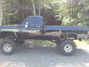 1987 GMC Sierra 4x4. New black paint about 8 months old, 12" suspension lift, cross over steering with hydraulic assist, 1 ton axles with 5.13 gears and Detroit locker, 39" mickey Thompson Baja tires 75% tread left, 16.5x12 mickey bulletlhole rims, all of the drivetrain has 15000 miles on it. Motor, transmission, transfer case, lift, axles, steering components were all redone when lift was installed, Dual exhaust with flowmaster 40 series mufflers ;Truck has never been abused or in the mud. Too many other new parts to name all of them.. Excellent Truck!!!