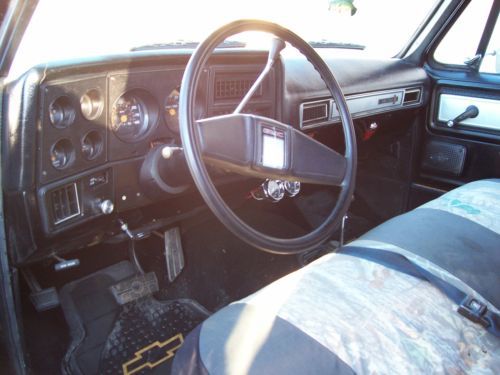 1980 Black on Black GMC K1500 4x4 350 V8 engine was replaced with new crate motor 275hp less 1500 miles April of 2008 Edelbrock Carb,intake,valve covers ,timing chain cover, Headers w/ glass packs. Power brakes,steering,cold ac and dual fuel tanks. Kenwood 4 speaker sound system. Sliding rear glass. New last summer upper and lower ball joints.tied rod and stablelizer shock replaced with frontend alignment @ Goodyear. 350 turbo trans with B/M kit/ into a NP 205 transfer case with 3.73 gears front and rear. 15x10 American Racing Outlaw wheels wit brand new BF Goodrich Baja Radials. Solid frame and Bed with the normal rust under the doors on the rocker panels. Over all truck is in good condition in need of little bodywork and a fresh paint job. Truck has been stored inside 90% of the time since owned. Runs and Drives good and is attention getter RESERVE PRICE LOWERED! Thanks for looking and good luck! |