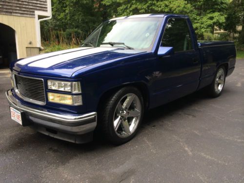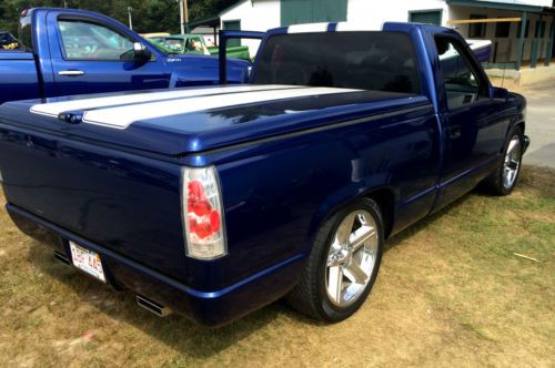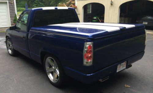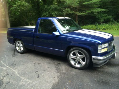 Offered for sale is my 1988 GMC Sierra Short Bed 1500 pickup. Over $20,000 was spent on this professional build. Powered by a Corvette 350 tune port EFI (electronic fuel injected) engine with a mild cam (2000 miles on the professional build) - 375 HP - TH400 automatic transmission (rebuilt with the engine) with a brand new B&M shifter mounted in a custom console - Ice cold AC - power windows - door locks - tilt steering column - power driver seat - Pioneer AM/FM/CD with amplifier behind driver seat - professionally lowered 4" using a Beltech lowering system with a built in air bag compressor for the rear shocks - hidden trailer hitch - shaved tail gate handle - 20" chrome IROC wheels with Toyo proxies - shorty headers with Flowmasters with chrome exhaust tips - K&N cold air intake - excellent chrome - This truck is gorgeous and sounds incredible. It is also very fast. It handles like a Corvette. This is a rust free custom pickup that turns heads wherever you go. Drive it across country or use it daily! It has always been garage kept. The speedometer is not working right now as I intended on putting in a Dakota Digital dash however the tachometer, oil pressure, voltage, temperature and fuel gauges all work perfectly. Call Jim at 781-659-4200 or e-mail me with any questions. I reserve the right to cancel this offering at any time as it is for sale locally. There is no warranty expressed or implied in the sale of this custom pickup truck. A $500 deposit through Paypal is required within 24 hours of auction end and the balance must be wired via bank transfer or by check upon clearance and payment. I would prefer an adult owner as this truck is very fast and needs a responsible driver (I have grandchildren)! Buyer is responsible for shipping but I will gladly accommodate or drive it home. The only reason I am selling this gorgeous street rod is that I am retiring and moving! Call me if you want to make a cash offer! My loss is your gain! No disappointments! This is a turnkey truck with a lot of time and money spent on this project. The paint job alone was $8800.00. WATCH THE VIDEO: This truck is also exceptionally good on gas because of the EFI, the exhaust and the rear end gears 3.73. It runs on regular fuel and gets approximately 20 mpg city and 25 highway. THE PRICE IS LESS THAN HALF OF WHAT I OWN IT FOR! |