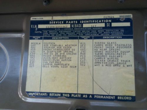 POWER STEERING POWER BRAKES AC CAB 3/4 TON 350 MOTOR 350 AUTOMATIC TRANSMISSION ORIGINAL BLACK PLATES CAMPER SPECIAL PULL OUT REAR BUMPER THIS IS A VERY NICE GMC TRUCK YOU ARE BIDDING ON. THIS TRUCK STILL HAS ITS ORIGINAL PAINT AND IS VERY PRESENTABLE. ALL BODY PANELS ARE ORIGINAL AND THE BED IS VERY PRESERVED!! THE MOTOR AND TRANSMISSION DRIVE VERY GOOD WITH ALOT OF POWER, AND IS A DAILY DRIVER. THE SEAT AND DOOR PANELS ARE ALSO ORIGINAL,AND NEW CARPET HAS BEEN ADDED. ALL GAUGES WORK AS WELL AS THE LIGHTS TURN SIGNALS AND HORN. THE AC UNIT HAS BEEN REMOVED BUT ALL OTHER COMPONENTS ARE THERE AND THE FAN BLOWS HARD. THE BODY IS VERY CLEAN WITH ONLY A FEW HOLES FROM WHERE A CAMPER WAS YEARS AGO. THIS TRUCK IS A PLEASURE TO DRIVE. IT IS VERY HARD TO FIND THESE TRUCKS IN THIS CONDITION. IF YOU HAVE ANY QUESTIONS,PLEASE FEEL FREE TO ASK AND WE WILL ANSWER THEM.. COMES WITH A CLEAN CALIFORNIA TITLE AND CURRENT REGISTRATION IN CALIFORNIA.WE PREFER A PERSONAL INSPECTION,BUT IF NOT ABLE PLEASE ASK QUESTIONS. OVERSEAS BUYERS WELCOME ,BUT YOU MUST ARRANGE YOUR SHIPPING..US BUYERS A SHIPPING QUOTE CAN BE PROVIDED WITH A ZIP CODE. BEING SOLD AS IS WHERE IS WITH NO GUARANTEES. PLEASE VIEW VIDEOS BELOW: http://youtu.be/cWR6isB3wZE http://youtu.be/QS1C2ka8EiQ |