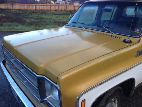 I have a very nice 75 GMC crew cab for sale, this truck is a time capsule. It was garaged most of its life and it shows, I cannot find any rust on this. It runs and drives great and the tires are good. This truck has factory air and a tilt wheel, it has the gauge package with the clock. It has paperwork dating back to new and the build sheet is with it. You will not find a nicer crewcab to start a restoration with, or drive as is. The only thing I notice on the body is the passenger door looks to be a different shade of gold, the truck appears to have all its original paint other than this, and I don't know if it was an older factory respray.There is nothing hiding in this truck, it is solid and shows. This would be a great truck to put airride in and a set of wheels to tow a vintage race car.