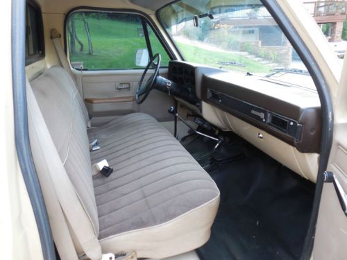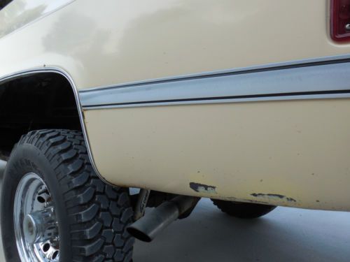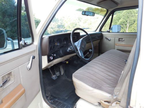 New brakes front(rotors & pads) & rear(drums & shoes) New ball joints in front axle Both differentials drained, inspected, and refilled New cooling system(radiator & water pump) New battery & altenator SM465 4-speed transmission rebuilt New clutch and rebuilt hydraulics for clutch NP205 transfer case inspected and resealed New A/C compressor and dryer, condenser and evaporator flushed - system needs oring and recharging. A/C was working last summer, but have not had time to repair it this year. Tires have 90% tread Herculiner liquid bed liner installed Goose neck hook up and brake box installed Truck has a 2 -2.5" lift. Tinted windows and billet grille 350 engine runs good but uses a little oil. I have no idea how many miles are on this engine/truck. I have used it several times to tow a gooseneck loaded with a truck or hay and it pulls fine. Needs a tailgate - previous owner stored the tailgate in a barn on the ground for several years and it is rusted along the bottom. It still works, but is probably the worst problem with this truck. Hood needs repainting - has been repainted at some point(doesn't quiet match the rest of the truck) & the clear coat is peeling(see pics). There are a couple of areas of rust in the right bed side under the paint(see pics with tape measure). They are not too big, but be aware they are there. Chevrolet, Chevy, 4WD, 4 wheel drive |
