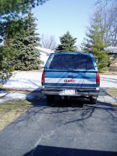 1991GMC Pickup W/Extened Cab, 8' Box, HD Trans & motor. 8600lbs. Rated 1 Ton.454 Cubic Engine Appox. 3,000 miles, 3 Speed Hd Trans Approx. 5,000 mies. 4 wheel drive plus Electric Brakes for Trailer. With Camper Shell w/ a Special high lift rear window. Elec .slide Rear wd.