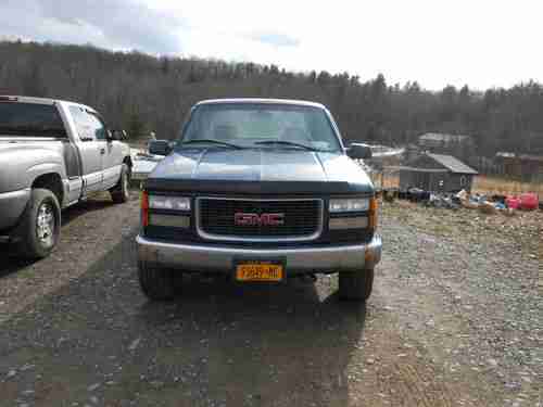 I am selling my 1998 GMC Sierra 4X4 Long Box ext cab. This truck is in good condition. It has the slight usual rust on the box sides and rockers but not too bad. This truck is a VERY Reliable Truck. I drive it to and from work every day, 30 miles round trip a day. I've got a bunch of receipts. There is a Crate Engine in it. It was replaced at around 90k. The crate engine has approx. 108k miles on it. Have all receipts for engine and installation. The intake gasket was replaced around 5k ago. The carrier bearing was replaced . 4 Brand new raised white letter tires that only have around 5k miles on them. front rotors and calipers and pads were changed, New exhaust was replaced last summer. The rear drums and brake shoes and all the hardware inside was replaced also. both front wheel bearings were replaced. Rear wheel cylinders were replaced when back brakes were done. New fuel tank and fuel pump. New serpentine belt and belt tentioner. The truck was repainted before. There is a little rust starting to come threw on the box sides around the wheel wells and some on the rockers, but the cab corners do not have any rust on them. This truck has a after market cd player in it. There is a piece missing from the edge of the seat on the drivers side . The water pumnp was replaced and the alternator was replaced . the inner and outer tierods were replaced and the ball joints were replaced before. I believe I am the third owner of this truck. This truck runs and drives very well. The transmission was flushed and new filter and fluid last summer. This tranny shifts perfect. The headlights ( lenses) are new also. This truck also has a bedliner and a trailer hitch. If you have any questions please do not hesitate to ask. my home phone is 1-607-565-2511 ask for Rich.