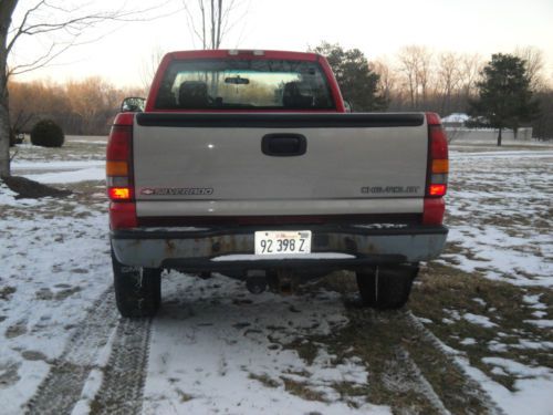 Please Read before Bidding! Up For Sale is a 2003 GMC Sierra 2500HD. It has a 6.0L Gas engine. 4x4. This truck will make a good work truck as that is what I am using it for now. I am selling it due to buying a newer truck but I am still currently using it also so the mileage may change a little bit. I have owned this truck for 2 years. I have not had any issues with the engine, transmission, or 4x4. A FEW THINGS TO NOTE: 1.Oil pressure gauge does not work. It was like that when I bought it and never fixed it. I Have Not had the engine use any oil on me since I have owned it. 2. Check engine light comes on every once in a while and most of the time it goes out after a while. It was like that when I purchased truck and I had it checked and was told it just needed a new set of spark plugs & Wires. I have driven it like that for 2 years and haven't had an issue with it. 3. The rocker panels and cab corner do have rust as you can see in pic. The frame is Solid with just the normal surface rust. Once again it was like that when I got it and was just using as work truck. 4. Tail gate is silver as you can see in pic. Tires are only a year old. Rims are pitted a little bit. Truck has some dents here and there but nothing too major. If you are just looking for a good work truck this is for you.