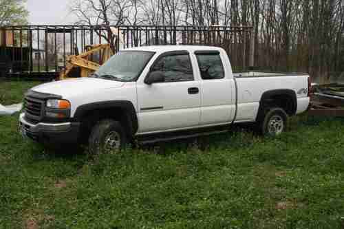 2005 GMC Sierra 2500 HD 4 wheel drive extended cab work truck. Plain Jane has its share of nicks and dings but no rust. Had local station put a NEW Jasper 6.0 Vortec engine in 3 years ago. Has about 70K miles on new motor. still runs and drives great. New tires and head liner. 4 wheel drive works well. Has a new B&W goose neck hitch in bed. Only reason to sell I got another truck with Diesel it pulls my gooseneck better. Feel free to email me if you need more info. I always sell NO Reserve. High bid gets it. located at Covington, Ohio stop in and drive it before bidding if you like. Would consider trade for fishing boat 18 or 20 foot Deep V aluminum. email me what you have to trade.