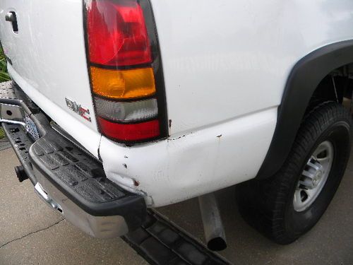 This is a NO RESERVE Auction for a 2006 GMC Sierra 2500 HD 4x4. The truck has a 6.6 Duramax Diesel Engine and an Allison Transmission. The truck runs perfectly. Interior is in good condition. We have seat covers on the front seats as they have some tears and more wear. Back seats are in very good condition. The exterior is in good condition, the bed of the truck has some small dents and scrapes on the driver side and there are two larger dents on the passenger side of the bed. Please inspect the pictures. All in all she is a great truck at a great price. Aesthetically there are a couple of small things to fix to make the truck perfect; the lock cover on the back, passenger side door is missing, the floor strip on the back driver side door is missing, two of the wind guards are cracked and the wind guard on the passenger door is missing. I prefer to list every little thing for your review.