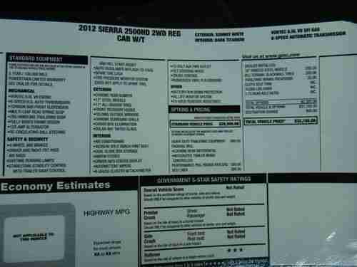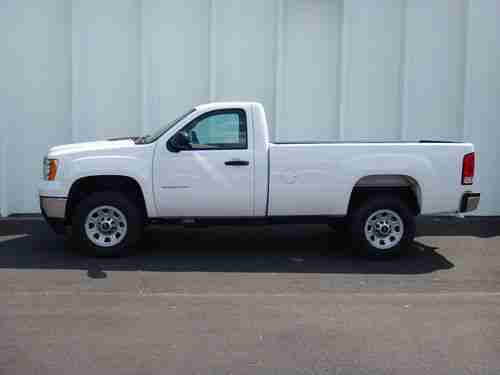 Hello, and thank you for viewing our brand new 2012 GMC Sierra 2500 Work Truck. This is an untitled vehicle with nineteen miles on the odometer, and full factory warranty. Summit White exterior and Dark Titanium cloth means this work truck hides its dirt well. The vehicle is equipped with a 6.0L V8 pared with a 6-speed automatic transmission.