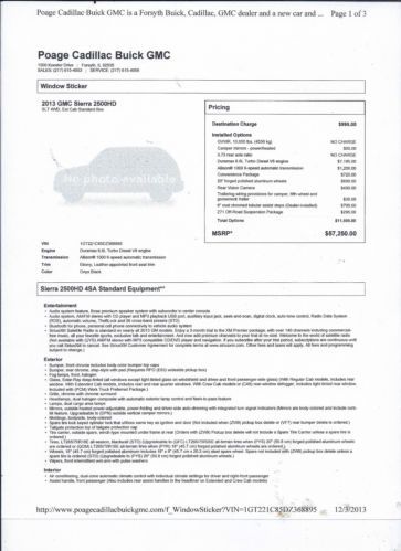 You are bidding on a BRAND NEW TRUCK. Let me say that again you are bidding on a BRAND NEW 2013 GMC Sierra Ext Cab SLT 2500HD 4x4 z71 rear camera leather heated memory seating. I have the window sticker posted in the pictures section. This truck is brand new with no miles to speak of. The warranty will begin the moment it's sold. This is just a brand new 2013 that we need to move to make room for the 2014's we already have and the soon to have 2015's that we have just ordered. It is not possible to purchase a 2014 Ext Cab so this truck is really rare. The reserve price is set with the rebate included. Which is $4000. Additional rebates that you might qualify for are as follows. $1000 owner loyalty must own a 99 or newer GMC or Chevy truck van or SUV. Then there is a additional rebate of $1500 if you have a trade in of a 1999 or newer any car truck van or suv. I know some of the rebates are confusing. Another point to make is that this 99 or newer vehicle doesn't have to run or even move you just have to be trading it. For that matter I had one that we didn't even see it went straight from this guys business location to the junk yard. If this is you tell me what you have and I'll see what I can work out for you. This truck needs to go and you can tell that I will work with anyone no matter how crazy the idea is. Call me if we need to do something like this. You will find used trucks like this here on ebay selling for my reserve this truck is not used though. Oh and no I can't sell this truck out of the country. It has to be within the United States. It's time for this truck to go make your offer quickly it's just a matter of time before someone steps up to get this great deal. Also I do want to mention that rebates vary throughout the country. If you want me to check to see if there are additional rebates for your area just send me the zipcode and I'll see what comes up. My rebates are set for 62535 central Illinois. |