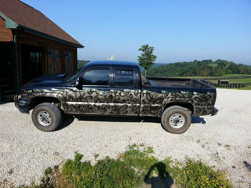 gmc 2500 hd extended cab 4x4 rebuit title. im second owner. runs and drives great. hauls amazing. brand new Alison transmission with 3 year 100,000 mile warranty. still drive every day. 130,000 miles new bfg all terrain tires custom interior speakers, radio, custom paint job. tono bed cover, 5ht wheel reese hitch leather seats, heated seats, controls on stearing wheel ( needs control box for radio to run off the but other controls work) cruise control power everything. love the truck but i have a baby on the way and its not big enough for a family.