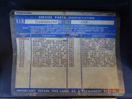 You are looking at a garage stored (when not being used) desert survivor. This truck has never been in a wreck. I bought this truck in 1980 from the original owner. Was purchased new in PHX and has been in AZ its whole life.The only body part that has been replaced is the right side fiberglass fender. A tire blowout took it out. It was replaced with a GM Fender. You read that right, the body is completely GM, not a P.O.S. that sat for 10 years and got restored out of a catalog with garbage parts. When it was repainted 10 years ago the front bumper was re-chromed, not replaced with tin junk. This truck even has the original tire jack and lug wrench. This truck has been maintained, not restored. Being that it is driven and does not sit much it is not perfect but VERY NICE. In 1998 the original engine (at 271k mi.) was replaced with a 1991 4-bolt 454 that was bored 30 and forged pistons were installed. Otherwise built stock. In 2008 the original transmission was replaced with a 4L80E. At that time I installed a GM throttle body injection system and ECM to go with the electronics in the trans. Yes, it does have the ALDL port for diagnostics. This is the classic beauty you want hauling your trailer Queen to the show.