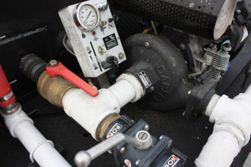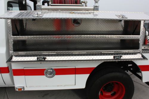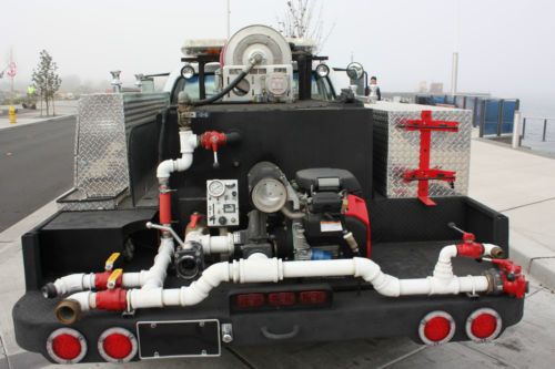This dual wheel 4 wheel drive truck was purchased from an Eastern Washington State Fire Department, and is in very good condition. It has been stored indoors, and shows no signs of rust. The odometer shows 15600 miles, however, the true mileage is unknown. The truck is mounted with a 250 gallon tank, hose and motorized hose reel mounted on top and new spray nozzle. The pump and pump engine are 4 years old at the purchase cost of $6800. Applications include: Booster Reel, Multiple Hand Lines, and Wildland/Attack Fire Suppression. The pump engine is a Honda GX690 24hp with a Darley Pump. Engine has Draft capability to 25 feet. The side tool boxes look brand new. The siren and emergency lights are all operable. The tires are in fair condition. This truck is mechanically solid, and everything works!