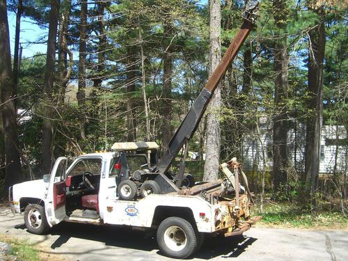 Bought it on eBay and drove it up from Oklahoma in 2003. Completely rust free at the time, it now has one small hole behind each door and rust on the lower part of the driver's rocker panel, shown in photos. The cab is so tight it's easier to close the door if you open a window. 350 gas, 3-speed stick w/low (some would call it a 4-speed), dual 20-gallon tanks, dual exhaust that needs work, twin 10,000lb. Ramsey winches with 100 ft. of 3/8" cable on each; power tilt & telescoping boom with nylon sling, 6,000lb. wheel-lift, Force 4 XL-4000 light bar (guy I bought it from made a big deal out of it but it's just another light bar to me), gantry lights and tilt wheel. Also has: Lucerne grille guard, 28"X19" triple core radiator, hydroboost brakes, load range E tires, remote high idle control, tagalongs, dolly set and of course, a clear title. Truck runs great: starts easily in all weather and runs beautifully. There's exactly one failed hydraulic hose: on the cross beam of the wheel lift right at the pivot pin where all the steel and hoses meet. Fortunately it's not a critical function and it doesn't leak if you don't use its associated lever. I've only put 9000 miles on it in the ten years I've owned it, using it only occasionally for buying/moving project cars, motorcycles (I can show you how), auto junking, fetching firewood, hoisting a pallet of shingles up to my garage roof, picking and placing boulders around the yard, etc. etc. etc. Short wheelbase and narrow body allows you to place a disabled vehicle in slots a ramp truck can only peer into. Parking brake cables are frozen. Comes with a spare wheel, extra tires and any other spares I've accumulated for it over the years. Please scrutinize the photos and don't hesitate to ask for more if there's anything else you'd like to see. Thanks for looking and reading all this!