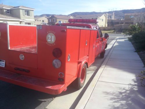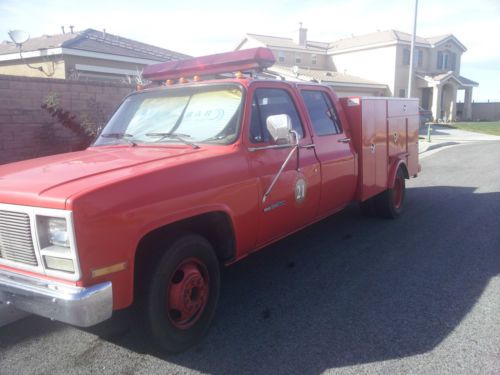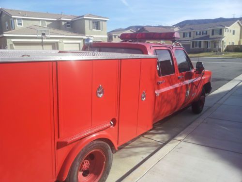 1990 GMC Crew Cab Dually 3500 rescue truck. This truck is in excellent working condition. Strong running truck. Great as a work truck with many compartments or rent to movie studios. Tinted windows were just added. Chevy motor V8 Diesel.