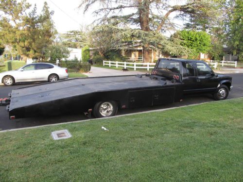 GMC C/K3500 Extended Cab hauler Ramp Truck v8 6.5 turbo diesel with 77k miles. 2-wheel drive with 18-foot flatbed car hauler (has