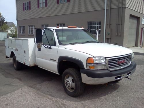 2001 GMC 3500 UTILITY BODY. 6.0 LITRE GAS ENGINE WITH AUTOMATIC OVERDRIVE TRANS. ENGINE RUNS STRONG AND TRANS SHIFTS AS IT SHOULD. CAB IS RUST AND DENT FREE, ONLY HAS MINOR DINGS AND SCRATCHES IN HOOD. A/C AND LEATHER SEAT, SEAT HAS WEAR&TEAR (SEE PHOTOS) TIRES ARE AT ABOUT 50%. UTILITY BODY IS 11' AND HAS SOME RUST BUT IS REPAIRABLE. ALL DOORS WORK. THE TRUCK IS FOR SALE LOCALLY SO I RESERVE THE RIGHT TO END AUCTION EARLY IF NEED BE. THERE IS NO WARRENTY ON THIS VEHICLE. VIEWING OF VEHICLE BY APPOINTMENT ONLY. BEFORE BIDDING IS ALWAYS RECOMENDED. THIS VEHICLE HAS A NEW JERSEY TITLE. |