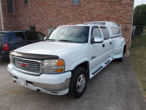 Listed is a 2001 GMC Sierra 3500 Duramax Diesel with 131,842 actual miles. Truck is only used to pull 24ft inclosed trailor. New injectors were installed at 100K miles. Truck has a 750.00 edge chip, as this makes towing heavy loads a breeze. Everything works, and truck has been serviced every 4000 miles. Camper shell will need a little work as the back hatch doesn't stay locked. Brakes were replaced (front & back) at 110K.Tires are almost need in front, and about 50% in rear. Bought truck in early 2004, and did the necessary repairs as truck was damaged in front. Has salvage title due to accident. No damage to frame or suspension. Can deliver truck within 250 mile radius, after full payment. Please call 931-648-1957 with any questions, and please don't bid if your not serious. Thanks !!
