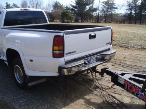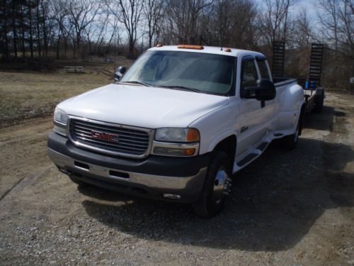 This is a 2001 GMC Sierra 3500Dually 2WD. It has a 6.6L Duramax Diesel and Allison transmission. 127,000 miles. Leather interior is in great condition and has power seats,windows, locks, A/C, tilt ,cruise and rear defrost. It has new brakes front and rear. New front rotors and wheel bearings. New belt, pulleys and alternator. Tires are 75%. Injectors and injector pump have been replaced. Has never had a programmer on it. This truck runs and drives great!