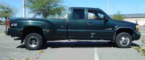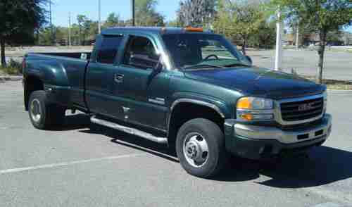 THIS 2003 GMC SIERRA 3500 SLT DIESEL 4X4 ,THAT HAS GREEN EXTERIOR AND TAN LEATHER INTERIOR , HAS JUST BEEN SERVICED AND IS READY TO ROLL. THIS DIESEL HAS VERY LOW MILES FOR THE YEAR , 141K . YOU WILL BE HAPPY TO KNOW THIS BIG BOY HAS ALL THE TOYS !! YES, POWER EVERYTHING. THE DULLEY HAS POWER WINDOWS , POWER LOCKS , POWER MIRRORS , CRUISE , ETC, ETC. THIS DULLEY WILL NEED A COMPLETE DETAIL / CLEANING AS YOU ARE SEEING IT AS WE RECEIVED IT. PLEASE LOOK AT ALL THE PICTURES AND YOU WILL SEE THE BODY HAS SEVERAL PLACES OF NEEDING REPAIR. THERE ARE SEVERAL HEAVY SCRATCHES ALL AROUND. BOTH SIDES OF THE REAR WHEEL WELLS ON THE OUTSIDE NEED REPAIR. NOW, IF YOU ARE JUST LOOKING FOR A GREAT WORK TRUCK AND NOT WORRIED ABOUT THE BODY---THEN THIS IS IT !!!!!! IN TRYING TO BE MORE THAN FAIR WE WILL STATE THAT THE BODY IS UNDER AVERAGE CONDITION. PLEASE LOOK AT CAREFULLY AND DECIDE BEFORE BIDDING IF YOU WANT A PERFECT TRUCK OR ONE THAT IS FAR BELOW VALUE AND YOU DO SOME BODY FIXXIN !! PLEASE NOTE THAT THE RIGHT POWER MIRROR IS BROKE. LOOK BEFORE BIDDING---THEN BID ON A DIESEL DULLEY 4X4 ,THAT IS WAY WAY BELOW BOOK VALUE. PLEASE NOTE THAT THIS IS A NO RESERVE AUCTION--SO BID TO OWN ,OR DO NOT BID , THANKS.