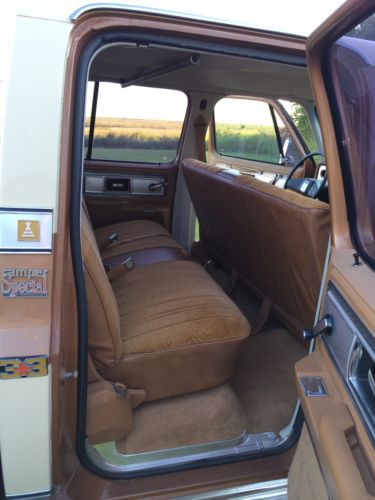 ONE OWNER. ALL ORIGINAL. 78,000 ORIGINAL MILES. KEPT IN METAL FARM BUILDING ITS ENTIRE LIFE. FACTORY PAINT SHINES LIKE NEW. ABSOLUTELY NO RUST AND COMPLETELY NO SIGN OF ANY RUST ANYWHERE!! EVEN UNDERNEATH. THIS TRUCK IS FROM LOW HUMIDITY COUNTRY IN WESTERN KANSAS. IT WAS BOUGHT FOR AND SPECIFICALLY USED BY THE OWNERS OF A LARGE FARM TO PULL THIER 5TH WHEEL RV. IT WAS NEVER USED ON THE FARM. THE OLDER COUPLE ARE GONE NOW AND I PURCHASED IT FROM THIER SON. HE KEPT IT IN THE SAME BUILDING AND DROVE IT OCCASIONALLY TO KEEP IT LUBED. COMPLETELY MAINTAINED OVER THE TOP ITS WHOLE LIFE. THIS TRUCK IS TRUELY AMAZING FOR 35 YEARS OLD. IT LOOKS LIKE IT MUST HAVE IN 1979 AND DRIVES LIKE IT ALSO. INTERIOR IS IMMACULATE. NO RIPS TEARS OR EVEN WEAR. PRISTINE ALL AROUND. YOU WOULD SEARCH FOR A LONG LONG TIME TO FIND A TRUCK ANY WHERE CLOSE TO AS REAL AS THIS ONE. NEVER SMOKED IN ETC. ALL TRIM IS LIKE NEW. NOT EVEN ANY DOOR DINGS, SCRATCHES ETC. ORIGINAL TRAILER BREAK CONTROL AND CB!! REAR SLIDING WINDOW DUAL TANKS 454 AUTOMATIC. TILT, CRUISE, AIR CONDITIONER BLOWS ICE COLD!! YOU DONT NEED TO BUY THIS TRUCK AND START SPENDING MONEY ON IT. IT IS ALL THERE, ALL ORIGINAL ALLREADY. ITS A REAL THRILL, FOR ME ANYWAY, TO BE AROUND THIS TRUCK!! I GRADUATED HIGHSCHOOL IN1979 AND MY BEST FRIENDS DAD HAD ONE LIKE IT. IT REALLY BRINGS THAT TIME BACK BIG TIME. CAMPER SPECIAL, 3+3, SIERA CLASSIC. 2 WHEEL DRIVE. **IT DOES HAVE HOLES DRILLED IN THE BED WHERE THE 5TH WHEEL HITCH WAS*** THIS IS A NO RESERVE AUCTION. *** DO NOT BID IF YOU CANNOT PAY FOR IT*** LAST BIDDER WILL OWN IT. NO EBAY GAMES FROM ME AND I EXPECT NONE FROM YOU. THIS TRUCK CAN BE PICKED UP IN CUSHING OKLAHOMA. I CAN ALSO COORDINATE WITH YOUR SHIPPING COMPANY IF NEEDED. $500 DEPOSIT DUE AT AUCTION END BY PAYPAL. IF YOU DONT HAVE A PAYPAL ACCOUNT GET ONE OR USE SOMEONE ELSES. DO NOT BID IF YOU CANT MAKE THE DEPOSIT. REMAINDER DO IN CASH OR BY PAYPAL WITHIN 7 BIZ DAYS AFTER AUCTION END. I WILL TAKE A CASHIERS CHECK BUT THE TRUCK IS GOING NOWHERE UNTIL I DEPOSIT THE CHECK AND MY BANK CONFIRMS THAT IT HAS IN FACT CLEARED. TRUCK SHOULD BE PICKED UP WITHIN 2 WEEKS PLEASE. PLEASE ASK QUESTIONS IN THE QUESTION ANSWER FORUM ON THE LISTING SO THAT I CAN POST THEM AND NOT HAVE TO ANSWER THE SAME QUESTIONS OVER AND OVER. IF YOU FIND IT NECESSARY TO CALL, MY NAME IS DENNIS AND MY NUMBER IS 719-651-5237. PLEASE TRY THE Q&A FIRST.