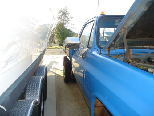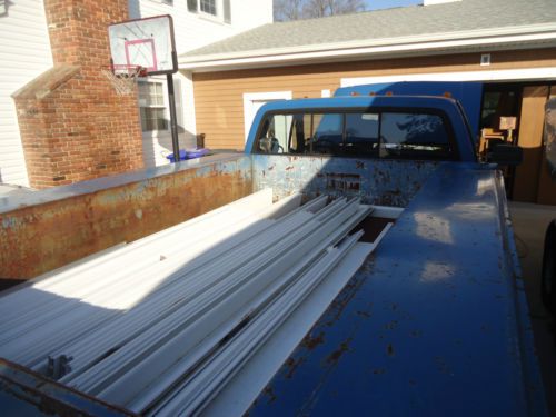 Up for bid is a cab and chassis truck with a custom dumping bed. This truck is a one owner truck! This truck was ordered under GM employee discount program and was one of the last SEO (Special Equipment Option). This was normally reserved for government or state orders. The truck was ordered with a 454 engine. And the engine was replaced with a GM crate complete engine. It has a hydraulic cylinder powered dumping bed. It has a Spicer Dana 60 front axle. The truck body may have 127,185 miles on it BUT the engine has only 900 miles on it. This truck has a crate HT502 truck engine that was installed in September 2002. Then we moved, and the truck only moved when we needed to move large stuff. But she fires up on command. There is a heavy duty battery installed. It has a K&N air filter installed. An Edelbrock performer series Carburetor 800 cfm is installed, as well as an Edelbrock RPM air-gap manifold. Detroit locker is installed. There is an AGR steering box installed on the truck, with a drop Pitman Arm. There is a two inch, Rancho lift in the truck. This truck is equipped with factory dual exhaust with NO converters. This is how it came from factory, original to truck. Brakes are heavy-duty Hydra Boost system. It has a Turbo 400 transmission with a 205 NP transfer case with factory skid plate. The rear axle is a Heavy Duty 14 bolt with Detroit Locker. Both axles were ordered with 4.56 gearing. The air-conditioning system was upgraded to R134 system. We have all the original paperwork, order sheet and window sticker. Feel free to check around for how much a GM HT502 goes for. They sell for over $6000. So for the price of an engine, you're getting one ton axles and transfer case, and the rest of the truck for free! Truck is registered and insured. The brake line recently sprung a leak, and is the only thing stopping it from driving right now. As you can see in the pictures, the tires have a lot of tread left. I tried to show different parts of the truck to display the upgrades that are installed. Who else has a bank vault handle for their lift-gate on a truck? I have lots more pictures, so if you need more - let me know and I will send them to you. This truck is for sale locally and seller reserves the right to end this listing early. A deposit will be required within 48 hours of auction ending. Should you require any additional information, please feel free to contact me through eBay. This truck is being sold as-is. I will not ship this truck. |
