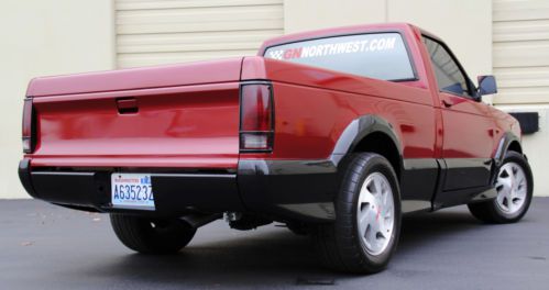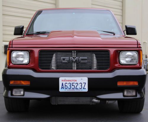 For sale is my 1991 GMC Syclone. This is a rare, AWD factory turbocharged version of the S10 pickup truck that was made in limited quantities in 1991. The truck itself is very clean with 86K original miles - all OEM body panels and cladding - never wrecked with a clean original interior. Syclones came with a black paint scheme - this truck has been repainted a very cool deep red color to stand out from the pack and match a famous Syclone die cast toy car by Johnny Lightning. At 86K miles, the truck itself was in good shape, but certain parts were showing signs of getting tired, so the entire drivetrain has just been replaced and improved by a local shop (GN Northwest) that specializes in GMC Syclones and knows them as well as anyone. The engine was completely rebuilt to OEM specs, the transmission was rebuilt and hardened to racing specs, and the AWD drivetrain was freshened with new components. For all intents and purposes, the drivetrain of this truck is brand new and better than it rolled out of the factory. It runs and drives perfectly. The truck has been extensively modified: the fuel system, turbocharger, intercooler, torque converter, transmission, intake, and exhaust have all been updated to street/strip racing specs. It is shod on all 4 corners with sticky race compound tires, has a full spread of aftermarket gauges, and can be shockingly quick. It will outrun almost any other car on the street at any price range in a stoplight race. This truck would make an awesome street or track toy. I'm selling it because it sits around as a showpiece and never gets driven. That's not why I bought it - I bought it and restored it because I love these trucks and wanted to put another cool Syclone back in circulation. I want to sell it to someone who will drive it. Points of interest: