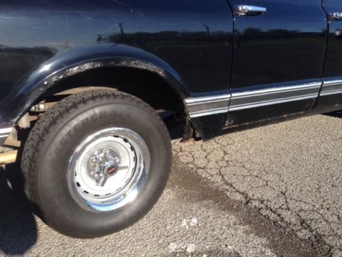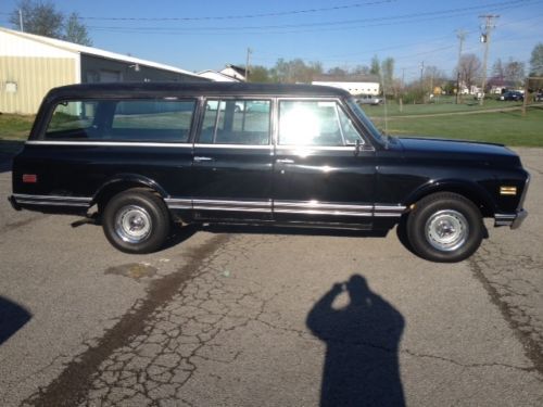 BLACK WITH BLACK INTERIOR 396 BIG BLOCK WITH AUTOMATIC TRANSMISSION 3 DOOR SUBURBAN NEW DISC BRAKES ON FRONT WITH CALIPERS WHEELS HAVE BEEN PAINTED WITH NEW CHROME SPINNERS LIKE NEW TIRES INTERIOR LOOKS BRAND NEW THE WOOD IN THE REAR LOOKS LIKE NEW DOES NEED THE CARB REBUILT ANY QUESTIONS JUST EMAIL THANKS AND HAPPY BIDDING |