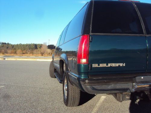 For sale is a 1998 GMC 2500 Suburban Turbo Diesel. The diesel engine runs perfectly with plenty of power and is being sold with no reserve. The 6.5L turbo diesel purrs along with plenty of power. The automatic transmission shifts perfectly without hesitation. There is a problem with the four wheel drive. For some unknown reason the front drive shaft was removed. The four wheel drive buttons on the dash are working. Not sure what will happen if the drive shaft is replaced. It now drives like a two wheel drive Suburban. The brakes, steering and suspension are in good condition. No exhaust leaks. The exterior is a glossy green with tan trim. There are no major dents or dings. The windshield is free of cracks or chips. The lights and lenses are bright and clear. It has a tow package. The tires have about 30% tread (see pic). The interior is tan leather. The front seats have seat covers. Under the covers, the driver seat is new but the passenger seat is original with leather cracks. All the other seats, including the 3rd rear seats are in good condition. The front seats have a head rest DVD. All the power options such as windows, side mirrors, cruise control, etc. work as designed. There is a factory sound system with CD and cassette that doesn't seem to be working. The heat is hot and the AC is cold. It has front and rear heat and AC. The hood latch works but the handle is broken (see pic). Despite the miles, this 2500 Suburban is running like new and family friendly. There are absolutely no mechanical issues with this vehicle, except the four wheel drive, and no indication of any impending problems. The new owner will be able to drive it home, with confidence, no matter where they live. This quality pre-owned vehicle is being sold by a Maryland Used Car Dealer. We require, on ALL internet sales, a $200 internet auction fee which covers document, clerical, airport transportation, IT support, internet provider and all other internet auction expenses. This fee covers our fixed expenses and allows us to sell with no reserve. We offer, with proof of insurance, a 60 day temporary tag for $50. This is a NO RESERVE auction which means that the high bidder, at auction end, must purchase the vehicle. Only bid if you intend to buy and you understand the payment procedure. Please don't insult our intelligence, and yours, with some lame excuse why you can't buy when you win. ALL non-paying bidders will be reported to Ebay. IF THE DEPOSIT IS NOT RECEIVED WITHIN 24 HOURS AS REQUIRED THROUGH PAYPAL WE WILL AUTOMATICALL RELIST AND REPORT AN UNPAID BIDDER. We try to describe all vehicles accurately. For questions call 410 251-7326. Thanks. SINCE THIS VEHICLE DOES NOT HAVE A CURRENT MARYLAND INSPECTION, MARYLAND MVA REGULATIONS STATE THAT IT CAN ONLY BE PURCHASED BY A NON-MARYLAND RESIDENT. DEPOSITS ARE NON-REFUNDE |