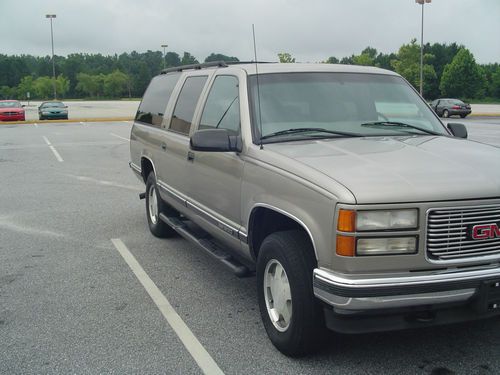 Up for auction a 1999 GMC Suburban 1500 with 4 wheel drive. The condition of this car is very good. All the options work fine and there are many of them. Tilt, cruise, CD, AM/FM, heated seats, power door locks, power windows, power mirrors. The leather seats and the carpet are in real good condition. When I bought this vehicle the rear carpet was wet. I thought someone had left the windows down in the rain, I recently discovered that the problem was the rear door had a leak. I cleaned the rubber seals around the door and removed the leaves ect. with a vac. Since then we have had 6 inches of rain and the back has not gotten wet. Though it is still damp from earlier. I hope this problem is fixed. The truck is already fixed up with electric brakes and came with the heavy duty hitch.. It is ready for towing. The tires are fair but will need to be replaced before too many more miles. I bought this truck back in Feb. of this year and I have not driven it a lot of miles. In May I stepped up to a 2005 Chevy Suburban . Thought about keeping them both but I seem to always drive the 05. This sale is for local pickup only. Any shipping will be up the the winning bidder. Cash, or bank money order is all that can be used as payment. Thank you for looking. Email me any questions.