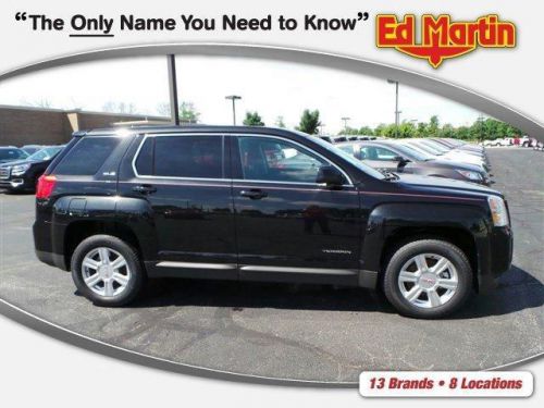 The 2014 GMC Terrain is designed to be the perfect combination of luxury and utility and it all starts with distinct, bold design features and striking grille. Every Terrain model has standard aluminum wheels to reduce weight and enhance fuel economy. The Terrain's available programmable power liftgate opens to your desired height with the push of a button. Projector beam headlights and fog lamps keep visibility high regardless of weather conditions. The Terrain has a refined interior which features a color touch radio and an acoustic design meant to minimize outside noise. As a crossover, the terrain has the comfort and utility of a small SUV. A 60/40 split and folding second-row maximizes space and there is up to 39.9 inches of rear leg room. The steering wheel features conveniently mounted steering wheel controls. The available 8-Way power driver's seat and remote activated heated front seats promise a comfortable ride regardless of trip length. At the heart of Terrain's performance and power is the 2.4L I-4 VVT DI Engine or opt for the available 3.6L V-6 VVT SIDI engine. The 6-speed transmission offers a wide ratio spread for power in the low gears and efficiency in the high gears. The Standard rear vision camera displays in the center stack touch-screen, and alloys for easy, confidant parallel parking. Finally, the four-wheel independent suspension offers a smooth, steady ride and a precise feel for the road. The Terrain is equipped with 6 airbags, including thorax and side-impact. Plus, anti-lock brakes come standard. The available Forward Collision Alert provides an audible and visual signal when a potential collision is detected. The Lane Departure Warning informs a driver when they have wandered from a lane without using a turn signal.CARBON BLACK METALLIC, ENGINE 2.4L DOHC 4-CYLINDER SIDI (SPARK IGNITION DIRECT INJECTION) with VVT (Variable Valve Timing) (182 hp [135.7 kW] @ 6700 rpm 172 lb-ft [232.2 N-m] @ 4900 rpm) (STD), LPO CARGO AREA CLOSE-OUT P Pricing includes destination, optional equipment and reflects manufacturer incentives. We pride ourselves in having an upfront, completely transparent purchase process. Nothing hidden and no surprises! Our goal, to create an automotive buying experience that will last a lifetime. Our hope, you will share your Ed Martin Experience with others. Sincerely, Ric McCoy General Manager
