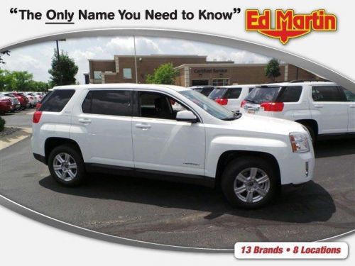 The 2014 GMC Terrain is designed to be the perfect combination of luxury and utility and it all starts with distinct, bold design features and striking grille. Every Terrain model has standard aluminum wheels to reduce weight and enhance fuel economy. The Terrain's available programmable power liftgate opens to your desired height with the push of a button. Projector beam headlights and fog lamps keep visibility high regardless of weather conditions. The Terrain has a refined interior which features a color touch radio and an acoustic design meant to minimize outside noise. As a crossover, the terrain has the comfort and utility of a small SUV. A 60/40 split and folding second-row maximizes space and there is up to 39.9 inches of rear leg room. The steering wheel features conveniently mounted steering wheel controls. The available 8-Way power driver's seat and remote activated heated front seats promise a comfortable ride regardless of trip length. At the heart of Terrain's performance and power is the 2.4L I-4 VVT DI Engine or opt for the available 3.6L V-6 VVT SIDI engine. The 6-speed transmission offers a wide ratio spread for power in the low gears and efficiency in the high gears. The Standard rear vision camera displays in the center stack touch-screen, and alloys for easy, confidant parallel parking. Finally, the four-wheel independent suspension offers a smooth, steady ride and a precise feel for the road. The Terrain is equipped with 6 airbags, including thorax and side-impact. Plus, anti-lock brakes come standard. The available Forward Collision Alert provides an audible and visual signal when a potential collision is detected. The Lane Departure Warning informs a driver when they have wandered from a lane without using a turn signal.ENGINE 2.4L DOHC 4-CYLINDER SIDI (SPARK IGNITION DIRECT INJECTION) with VVT (Variable Valve Timing) (182 hp [135.7 kW] @ 6700 rpm 172 lb-ft [232.2 N-m] @ 4900 rpm) (STD), TRANSMISSION 6-SPEED AUTOMATIC (STD), Front Wheel Pricing includes destination, optional equipment and reflects manufacturer incentives. We pride ourselves in having an upfront, completely transparent purchase process. Nothing hidden and no surprises! Our goal, to create an automotive buying experience that will last a lifetime. Our hope, you will share your Ed Martin Experience with others. Sincerely, Ric McCoy General Manager