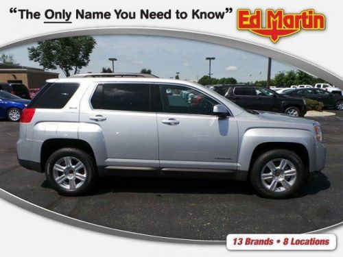 The 2014 GMC Terrain is designed to be the perfect combination of luxury and utility and it all starts with distinct, bold design features and striking grille. Every Terrain model has standard aluminum wheels to reduce weight and enhance fuel economy. The Terrain's available programmable power liftgate opens to your desired height with the push of a button. Projector beam headlights and fog lamps keep visibility high regardless of weather conditions. The Terrain has a refined interior which features a color touch radio and an acoustic design meant to minimize outside noise. As a crossover, the terrain has the comfort and utility of a small SUV. A 60/40 split and folding second-row maximizes space and there is up to 39.9 inches of rear leg room. The steering wheel features conveniently mounted steering wheel controls. The available 8-Way power driver's seat and remote activated heated front seats promise a comfortable ride regardless of trip length. At the heart of Terrain's performance and power is the 2.4L I-4 VVT DI Engine or opt for the available 3.6L V-6 VVT SIDI engine. The 6-speed transmission offers a wide ratio spread for power in the low gears and efficiency in the high gears. The Standard rear vision camera displays in the center stack touch-screen, and alloys for easy, confidant parallel parking. Finally, the four-wheel independent suspension offers a smooth, steady ride and a precise feel for the road. The Terrain is equipped with 6 airbags, including thorax and side-impact. Plus, anti-lock brakes come standard. The available Forward Collision Alert provides an audible and visual signal when a potential collision is detected. The Lane Departure Warning informs a driver when they have wandered from a lane without using a turn signal.CARGO PACKAGE includes (D42) rear cargo cover (AP9) cargo convenience net (V1K) luggage crossbars, CONVENIENCE PACKAGE includes (BTV) remote start and (KA1) heated front driver and passenger cloth seats, ENGINE 2.4L DOHC Pricing includes destination, optional equipment and reflects manufacturer incentives. We pride ourselves in having an upfront, completely transparent purchase process. Nothing hidden and no surprises! Our goal, to create an automotive buying experience that will last a lifetime. Our hope, you will share your Ed Martin Experience with others. Sincerely, Ric McCoy General Manager