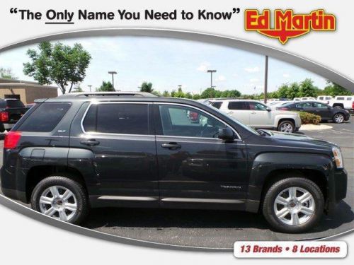 The 2014 GMC Terrain is designed to be the perfect combination of luxury and utility and it all starts with distinct, bold design features and striking grille. Every Terrain model has standard aluminum wheels to reduce weight and enhance fuel economy. The Terrain's available programmable power liftgate opens to your desired height with the push of a button. Projector beam headlights and fog lamps keep visibility high regardless of weather conditions. The Terrain has a refined interior which features a color touch radio and an acoustic design meant to minimize outside noise. As a crossover, the terrain has the comfort and utility of a small SUV. A 60/40 split and folding second-row maximizes space and there is up to 39.9 inches of rear leg room. The steering wheel features conveniently mounted steering wheel controls. The available 8-Way power driver's seat and remote activated heated front seats promise a comfortable ride regardless of trip length. At the heart of Terrain's performance and power is the 2.4L I-4 VVT DI Engine or opt for the available 3.6L V-6 VVT SIDI engine. The 6-speed transmission offers a wide ratio spread for power in the low gears and efficiency in the high gears. The Standard rear vision camera displays in the center stack touch-screen, and alloys for easy, confidant parallel parking. Finally, the four-wheel independent suspension offers a smooth, steady ride and a precise feel for the road. The Terrain is equipped with 6 airbags, including thorax and side-impact. Plus, anti-lock brakes come standard. The available Forward Collision Alert provides an audible and visual signal when a potential collision is detected. The Lane Departure Warning informs a driver when they have wandered from a lane without using a turn signal.ENGINE 2.4L DOHC 4-CYLINDER SIDI (SPARK IGNITION DIRECT INJECTION) with VVT (Variable Valve Timing) (182 hp [135.7 kW] @ 6700 rpm 172 lb-ft [232.2 N-m] @ 4900 rpm) (STD), TRANSMISSION 6-SPEED AUTOMATIC (STD), Front Wheel Pricing includes destination, optional equipment and reflects manufacturer incentives. We pride ourselves in having an upfront, completely transparent purchase process. Nothing hidden and no surprises! Our goal, to create an automotive buying experience that will last a lifetime. Our hope, you will share your Ed Martin Experience with others. Sincerely, Ric McCoy General Manager