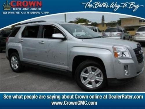 , Before Discount:$31,845.00, Dealer Discount:($1,688.00), Cash Incentive:($1,000.00), Bonus Cash:($500.00), Special Discount:($400.00), Internet Price:$28,257.00, Total Savings:($3,588.00)!BACK-UP CAMERA, LEATHER, BLUETOOTH, MP3 Player, KEYLESS ENTRY, 32 MPG, SAT RADIO, The GMC Terrain is designed to be the perfect combination of luxury and utility and it all starts with distinct, bold design features and striking grille. Every Terrain model has standard aluminum wheels to reduce weight and enhance fuel economy. The Terrain's available programmable power liftgate opens to your desired height with the push of a button. Projector beam headlights and fog lamps keep visibility high regardless of weather conditions. The terrain has a refined interior which features a color touch radio and an acoustic design meant to minimize outside noise. As a crossover, the terrain has the comfort and utility of a small SUV. A 60/40 split and folding second-row maximizes space and there is up to 39.9 inches of rear leg room. The steering wheel features conveniently mounted steering wheel controls. The available 8-Way power driver's seat and remote activated heated front seats promise a comfortable ride regardless of trip length. At the heart of Terrain's performance and power is the 2.4L I-4 VVT DI Engine or opt for the available 3.6L V-6 VVT SIDI engine. The 6-speed transmission offers a wide ratio spread for power in the low gears and efficiency in the high gears. The Standard rear vision camera displays in the center stack touch-screen, and alloys for easy, confidant parallel parking. Finally, the four-wheel independent suspension offers a smooth, steady ride and a precise feel for the road. The Terrain is equipped with 6 airbags, including thorax and side-impact. Plus, anti-lock brakes come standard. The available Forward Collision Alert provides an audible and visual signal when a potential collision is detected. The Lane Departure Warning informs a driver when they have wandered from a lane without using a turn signal. The 2014 GMC Terrain is designed to be the perfect combination of luxury and utility and it all starts with distinct, bold design features and striking grille. Every Terrain model has standard aluminum wheels to reduce weight and enhance fuel economy. The Terrain's available programmable power liftgate opens to your desired height with the push of a button. Projector beam headlights and fog lamps keep visibility high regardless of weather conditions. ??The Terrain has a refined interior which features a color touch radio and an acoustic design meant to minimize outside noise. As a crossover, the terrain has the comfort and utility of a small SUV. A 60/40 split and folding second-row maximizes space and there is up to 39.9 inches of rear leg room. The steering wheel features conveniently mounted steering wheel controls. The available 8-Way power driver's seat and remote activated heated front seats promise a comfortable ride regardless of trip length. ??At the heart of Terrain's performance and power is the 2.4L I-4 VVT DI Engine or opt for the available 3.6L V-6 VVT SIDI engine. The 6-speed transmission offers a wide ratio spread for power in the low gears and efficiency in the high gears. The Standard rear vision camera displays in the center stack touch-screen, and alloys for easy, confidant parallel parking. Finally, the four-wheel independent suspension offers a smooth, steady ride and a precise feel for the road. ??The Terrain is equipped with 6 airbags, including thorax and side-impact. Plus, anti-lock brakes come standard. The available Forward Collision Alert provides an audible and visual signal when a potential collision is detected. The Lane Departure Warning informs a driver when they have wandered from a lane without using a turn signal. Crown Automotive Group serving Tampa Bay Florida offers great low prices, rebates and incentives for new Group & used Group cars, vans and SUVs to all of our neighbors in S