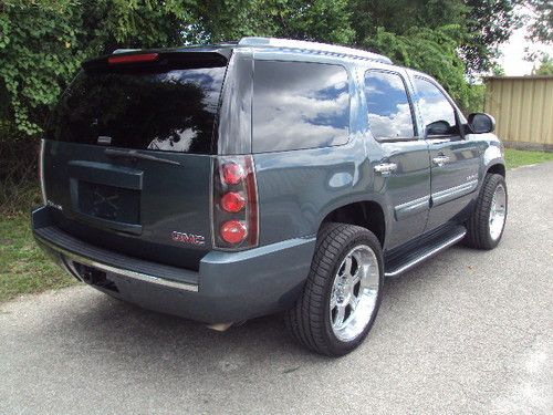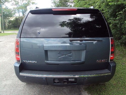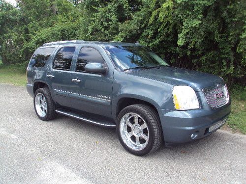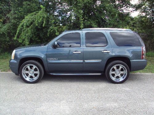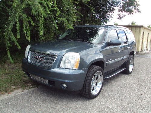 2007 GMC Denali, one owner, just traded in on a new luxury SUV. This vehicle has been very well cared for, and though it has a lot of highway miles, you'd never guess it! This Denali is finished in a very elegant Cobalt Blue that is complimented by a very luxurious Black Leather interior! It contains all of the amenities that one would expect to find in a luxury SUV! These include heated seats, a power lift gate, XM radio, entertainment system with remote, moon roof, full length side steps, power folding center section seats, and a host of other goodies that I'm probably forgetting. It is powered by a very smooth and brawney 6.2 litre V8 engine, and an equally smooth shifting 6 speed hydramatic transmission, with full time All Wheel Drive. There are no tears, or even visible wear in the leather seating, and the carpet is beautiful, again with no stains! It has also never been smoked in. The engine does have a little lifter noise when it is cold, but quiets down after warm up. This is very common among the 6.0 and 6.2 litre engines, and I don't believe it is any cause for concern. I just took my family on a trip in it for the fourth of July and it was a pleasure to drive! The Stabilitrack and Traction lights come on occasionally, and sometimes remain on, but sometimes go back out. Also the oil pressure guage doesn't always work, and is erratic. There is probably a loose connection somewhere, as these quirks,seem to manifest themselves at the same time. It is also shod with a set of Pro Comp Extreme Polished alloy wheels, with a brand new set of top of the line, Goodyear Fortera Tires! I have set a very reasonable reserve on this truck, so you may bid with confidence! I try to describe all of my vehicles as accurately as possible, but any and all questions are welcome, and indeed encouraged! My name is Pat and my number is (352)214-7896 As with all of my listings, I do reserve the right to end it early, as the vehicle is being offered for sale locally!