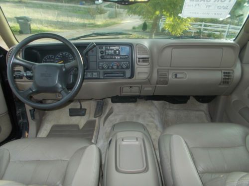 Engine = V8, 5.7 Liter Vortec Drive Train = 4WD Braking and Traction = ABS (4-Wheel) Steering = Power Steering, Tilt Wheel Entertainment and Instrumentation = AM/FM Cassette Stereo Exterior = Running Boards Transmission = Automatic Accessory Packages = SLT Comfort and Convenience = Front and Rear Air Conditioning, Power Windows, Power Door Locks, Cruise Control Safety and Security = Dual Air Bags Seats = Dual Power Seats, Heated Seats, Leather Seats Cargo and Towing = Roof Rack, Towing Pkg Wheels and Tires = Alloy Wheels, Wide Tires |